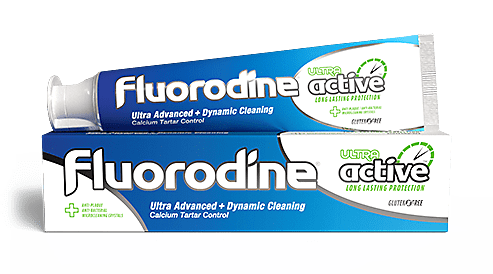 With long lasting care, new calcium enriched Fluorodine helps to strengthen enamel, fights cavities and reduces decay.
